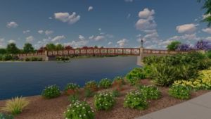 Here’s an artist’s rendering of the pedestrian bridge at the new Barney Farms neighborhood in Queen Creek, AZ. (Image from Fulton Homes)
